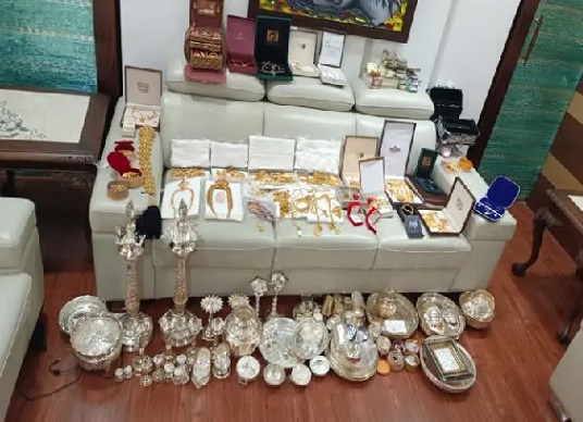 ಆರ್.ಟಿ.ನಗರದ ಮನೋರಾಯನಪಾಳ್ಯ ನಿವಾಸಿಯಾಗಿರುವ ಬಿಡಿಎ ಬ್ರೋಕರ್ ಮೋಹನ್ ಮನೆಯಲ್ಲಿ ಬರೋಬ್ಬರಿ ಎರಡೂವರೆ ಕೋಟಿ ಮೌಲ್ಯದ 4.5 ಕೆಜಿ ಚಿನ್ನ ಪತ್ತೆಯಾಗಿದೆ. ಅಪಾರ ಪ್ರಮಾಣದ ಬೆಳ್ಳಿ ತಟ್ಟೆ, ಲೋಟ, ಬಟ್ಟಲು, ದೀಪ, ಚಿನ್ನದ ಸರ, ಚಿನ್ನದ ಓಲೆ, ಚಿನ್ನಡ ಡಾಬು ಸಿಕ್ಕಿದೆ. ಮೋಹನ್ ಗೆ ಸೇರಿದ ಲ್ಯಾಪ್ ಟಾಪ್, ಒಂದು ಬ್ಯಾಗ್ ನಷ್ಟು ದಾಖಲೆಯನ್ನು ಎಸಿಬಿ ಅಧಿಕಾರಿಗಳು ವಶಕ್ಕೆ ಪಡೆದಿದ್ದಾರೆ.