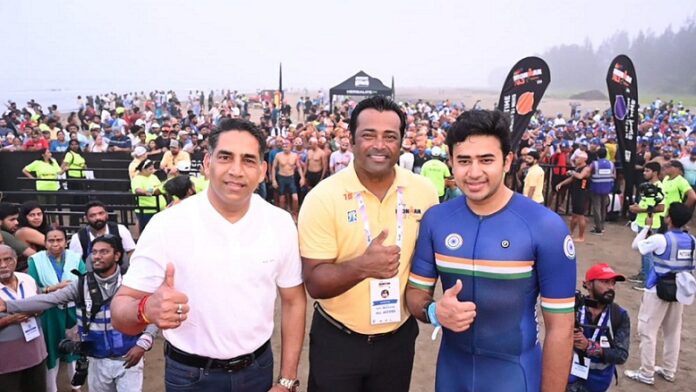 ಗೋವಾ: ಸಂಸದ ತೇಜಸ್ವಿ ಸೂರ್ಯ ಅವರು ಭಾನುವಾರ ಗೋವಾದಲ್ಲಿ ನಡೆದ ಐರನ್‍ಮ್ಯಾನ್ 70.3 ಚಾಲೆಂಜ್ ರೇಸ್‍ನಲ್ಲಿ ಭಾರತದ ಮೊದಲ ಜನಪ್ರತಿನಿಧಿಯಾಗಿ ಜಯಶೀಲರಾಗಿದ್ದಾರೆ. ತೇಜಸ್ವಿ ಸೂರ್ಯ 8 ಗಂಟೆ, 27 ನಿಮಿಷ 32 ಸೆಕೆಂಡುಗಳಲ್ಲಿ ಐರನ್ ಮ್ಯಾನ್ ಸ್ಪರ್ಧೆಯ ಮೂರು ವಿಭಾಗಗಳನ್ನೂ ಯಶಸ್ವಿಯಾಗಿ ಪೂರ್ಣಗೊಳಿಸಿದ್ದಾರೆ. ಐರನ್‍ಮ್ಯಾನ್ 70.3 ಗೋವಾದ ನಾಲ್ಕನೇ ಆವೃತ್ತಿಯನ್ನು ರೇಸ್‍ನ ರಾಯಭಾರಿ ಮತ್ತು ಟೆನಿಸ್ ದಂತಕಥೆ ಲಿಯಾಂಡರ್ ಪೇಸ್, ಲೋಕಸಭಾ ಸದಸ್ಯ ತೇಜಸ್ವಿ ಸೂರ್ಯ, ಸಂಸ್ಥಾಪಕ ಮತ್ತು ಸಿಇಒ ಯೋಸ್ಕಾ ಮತ್ತು ಐರನ್‍ಮ್ಯಾನ್ 70.3 ಗೋವಾ ರೇಸ್ ನಿರ್ದೇಶಕ ದೀಪಕ್ ರಾಜ್, ಹರ್ಬಲೈಫ್ ಇಂಡಿಯಾದ ಮಾರ್ಕೆಟಿಂಗ್ ನಿರ್ದೇಶಕ ಗಣೇಶನ್ ವಿ.ಎಸ್.ಅವರು ಭಾನುವಾರ ಮಿರಾಮರ್ ಬೀಚ್‍ನಲ್ಲಿ ಐರನ್ ಮ್ಯಾನ್ ಸ್ಪರ್ಧೆಗೆ ಚಾಲನೆ ನೀಡಿದರು.