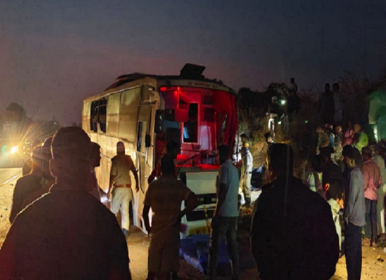 ಚಿತ್ರದುರ್ಗ: ಜಿಲ್ಲೆಯ ಹೊಳಲ್ಕೆರೆ ಪಟ್ಟಣದ ಬಳಿಯ ಕಣಿವೆ ಪ್ರದೇಶದಲ್ಲಿ ಖಾಸಗಿ ಬಸ್ ಪಲ್ಟಿಯಾಗಿ ಮೂವರು ಸಾವನ್ನಪ್ಪಿದ ಘಟನೆ ನಿನ್ನೆ ಬೆಳಗ್ಗೆ 5 ಗಂಟೆ ಸುಮಾರಿಗೆ ನಡೆದಿದೆ.