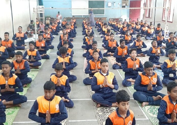 ಯೋಗ ದಿನದ ಅಂಗವಾಗಿ ಬೆಳಿಗ್ಗೆ ನೂರಾರು ವಿದ್ಯಾರ್ಥಿಗಳು ಶಾಲೆಯಲ್ಲಿ ಸಾಮೂಹಿಕವಾಗಿ ಸೂರ್ಯ ನಮಸ್ಕಾರ ಸೇರಿದಂತೆ ಒಂದು ಗಂಟೆಗೂ ಅಧಿಕ ಕಾಲ ವಿವಿಧ ಯೋಗಾಸನಗಳನ್ನು ಮಾಡಿದರು.